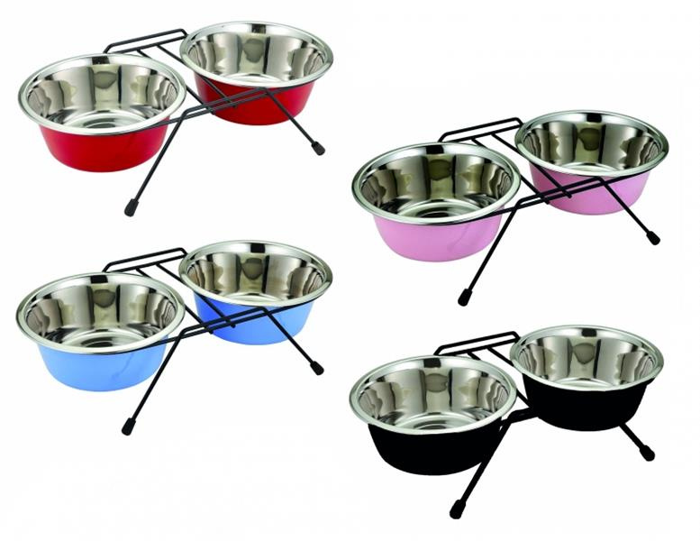Miska DUVO+ Stojak z dwoma miskami nierdzewnymi średnica 21 cm 2x1,89 L