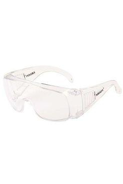 Klasyczne okulary ochronne o ergonomicznym kształcie, bez metalowych części.