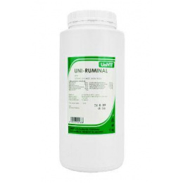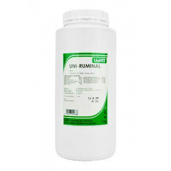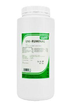 UNI-RUMINAL plv. jest zatwierdzony weterynaryjny preparat, jest to środek wspomagający i wzmacniający dla przeżuwaczy. Zawartość i wzajemne proporcje wymienionych składników są istotne dla stworzenia optymalnego środowiska do rozmnażania mikroflory i mikrofauny w żwaczu, a także dla prawidłowej motoryki przedżołądków, zapewnienia zapotrzebowania i produkcji witamin B. Preparat przyczynia się do regulacji zaburzeń metabolizmu energetycznego i zapewnia odbudowę użytkowych zdolności zwierzęcia.